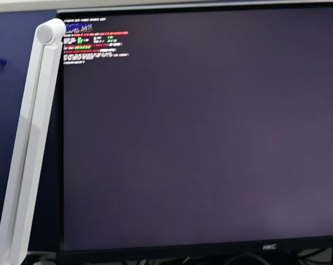 这时候我没有显示器,开机之后也没办法操作,遂来到学长工位,在学长的帮助下,进行了初步配置。配图有点糊,是当时连上显示器后的命令行界面: